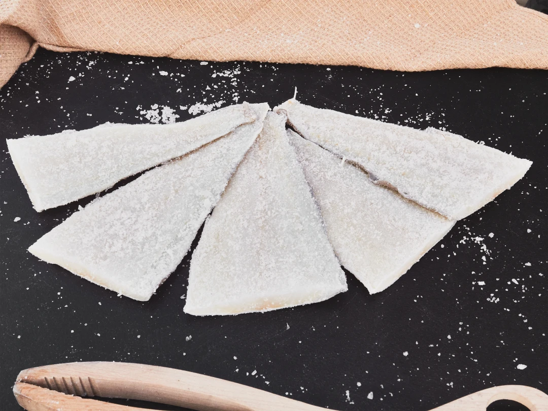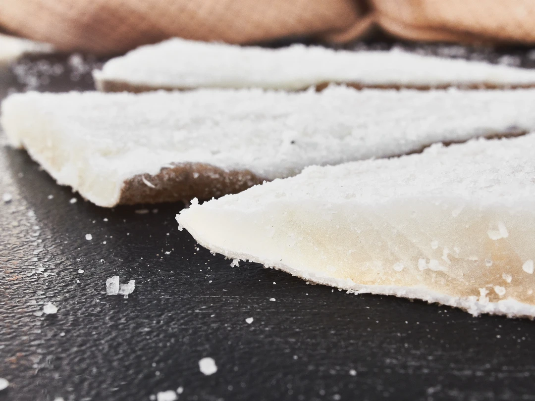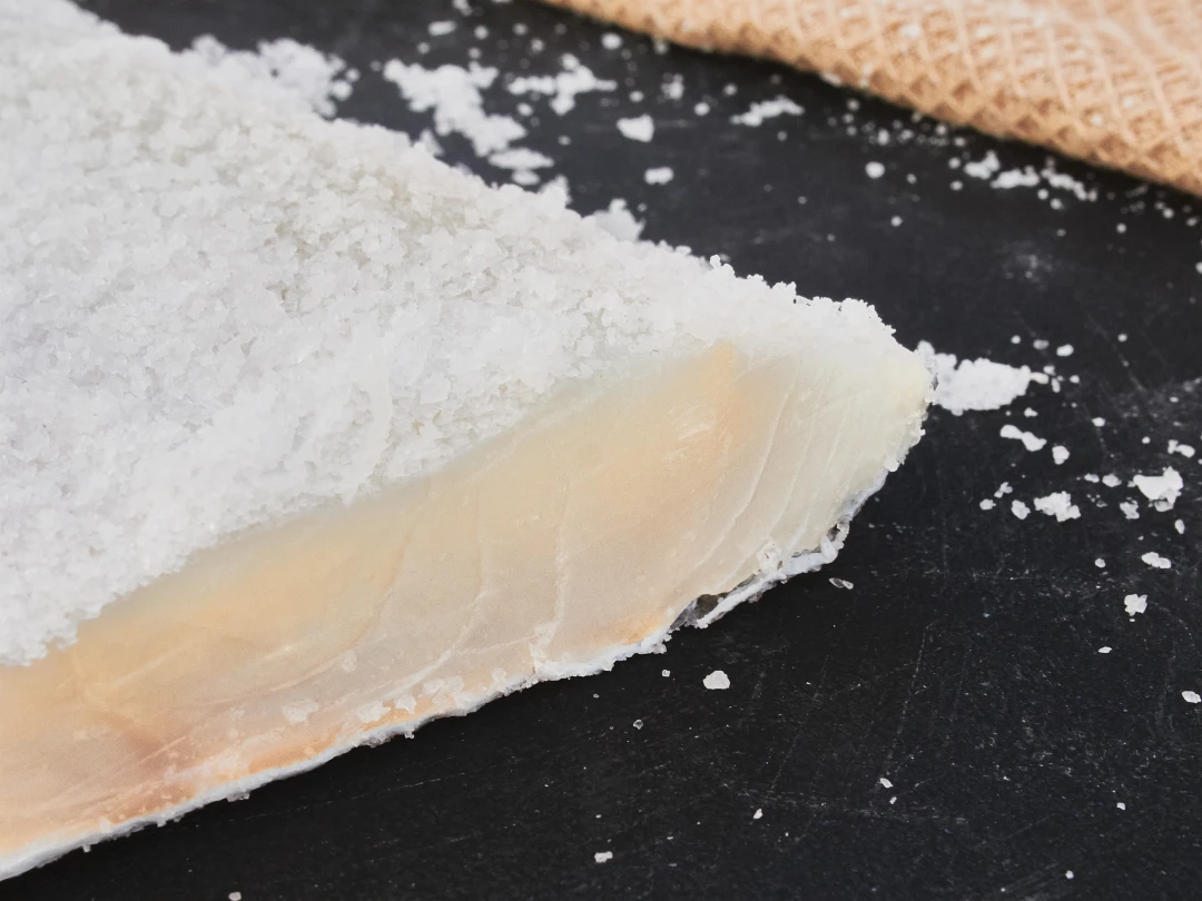 Información nutricional por 100g: Valor energético; 327,9kj/77,2kcal; grasas 0,1g; de las cuales saturades: 0,03g; hidratos de carbono 0,2g; de los cuales azúcares: 0,1g; proteínas 18,92g; sal: 22,1g.
