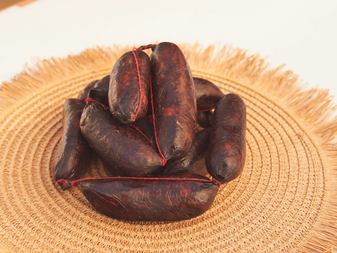 Reflejando la rica tradición culinaria de Jaén, esta morcilla combina la textura rica y el sabor profundo de la sangre con la dulzura y suavidad de la cebolla. Un toque picante se introduce sutilmente, equilibrando y realzando los sabores autóctonos del embutido.