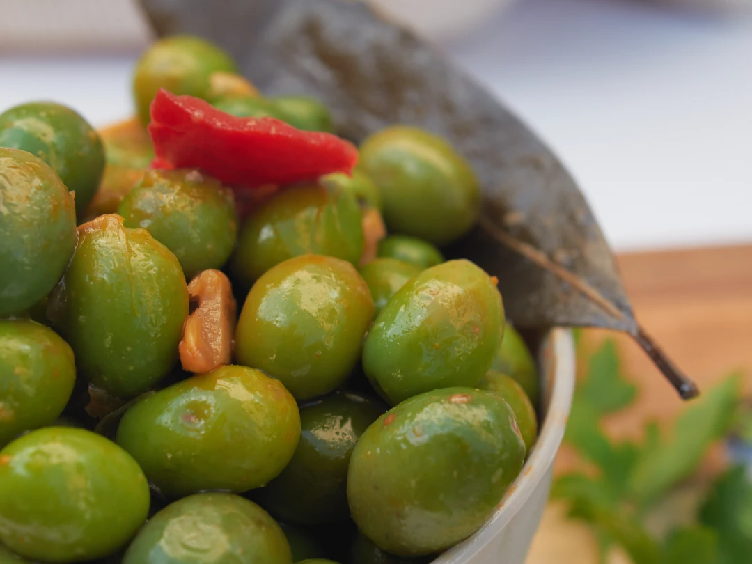 La aceituna alegría es matada con sosa mediante una técnica tradicional que suaviza la aceituna, revelando su sabor y textura únicos. Posteriormente, se aliña con un toque suave de picante, creando un equilibrio perfecto entre lo salado y el ardor.