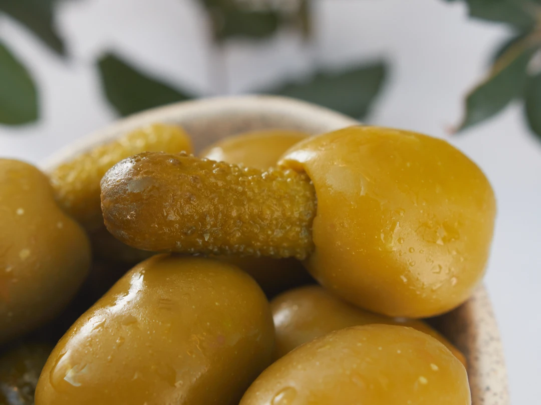 Destacando por su tamaño majestuoso, la aceituna Kimbo es un auténtico gigante en el mundo de las aceitunas. Sin hueso para un disfrute directo, esta aceituna se complementa perfectamente con pepinillo crujiente, ofreciendo un contraste de texturas y sabores.