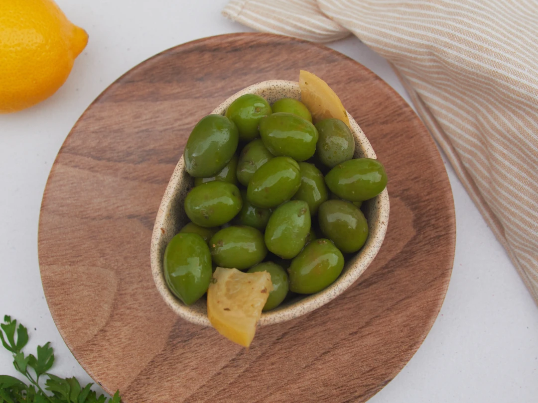 Esta aceituna, caracterizada por su contenido reducido en sal, brinda una experiencia gastronómica refrescante gracias a la incorporación de trozos de limón. El toque cítrico del limón, combinado con el sabor suave y ligeramente dulce de la aceituna, crea un equilibrio perfecto entre dulzura y acidez.