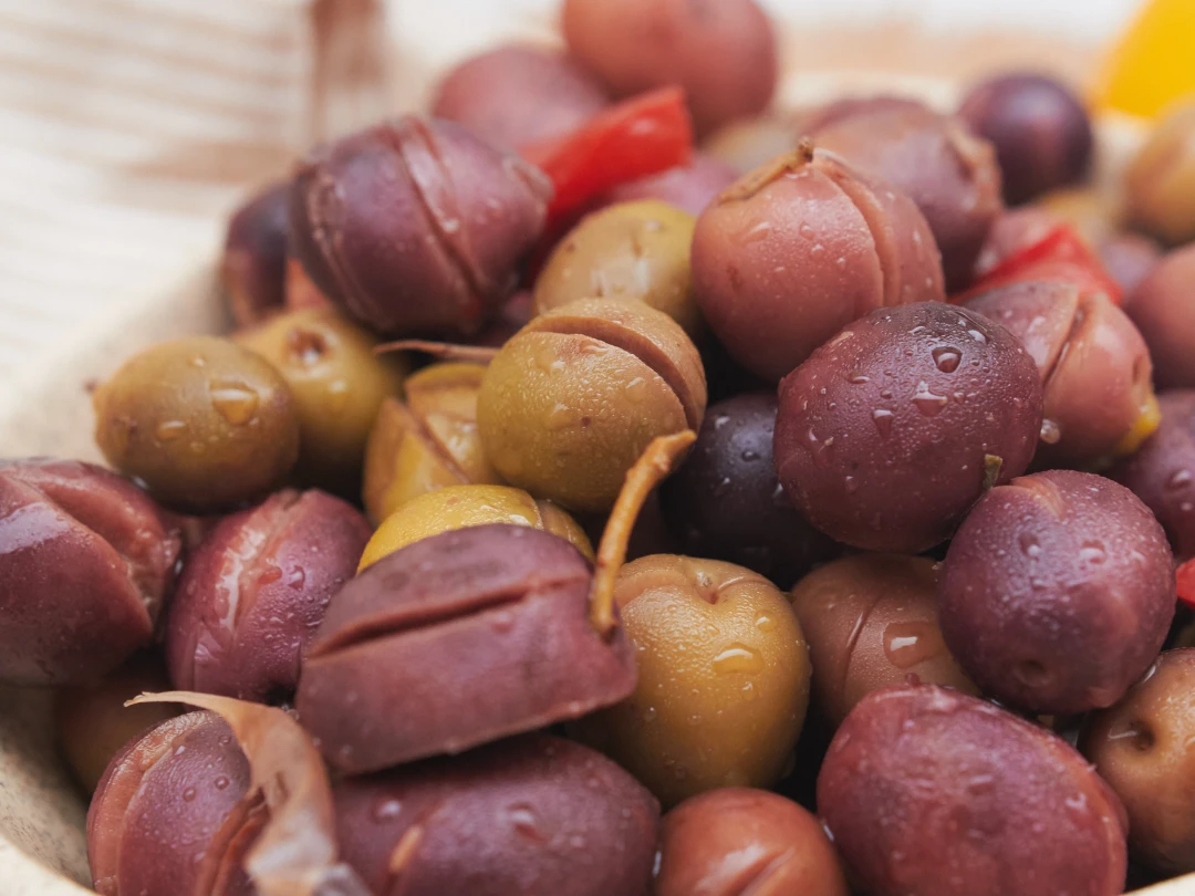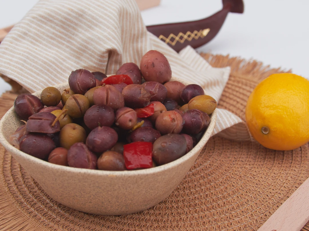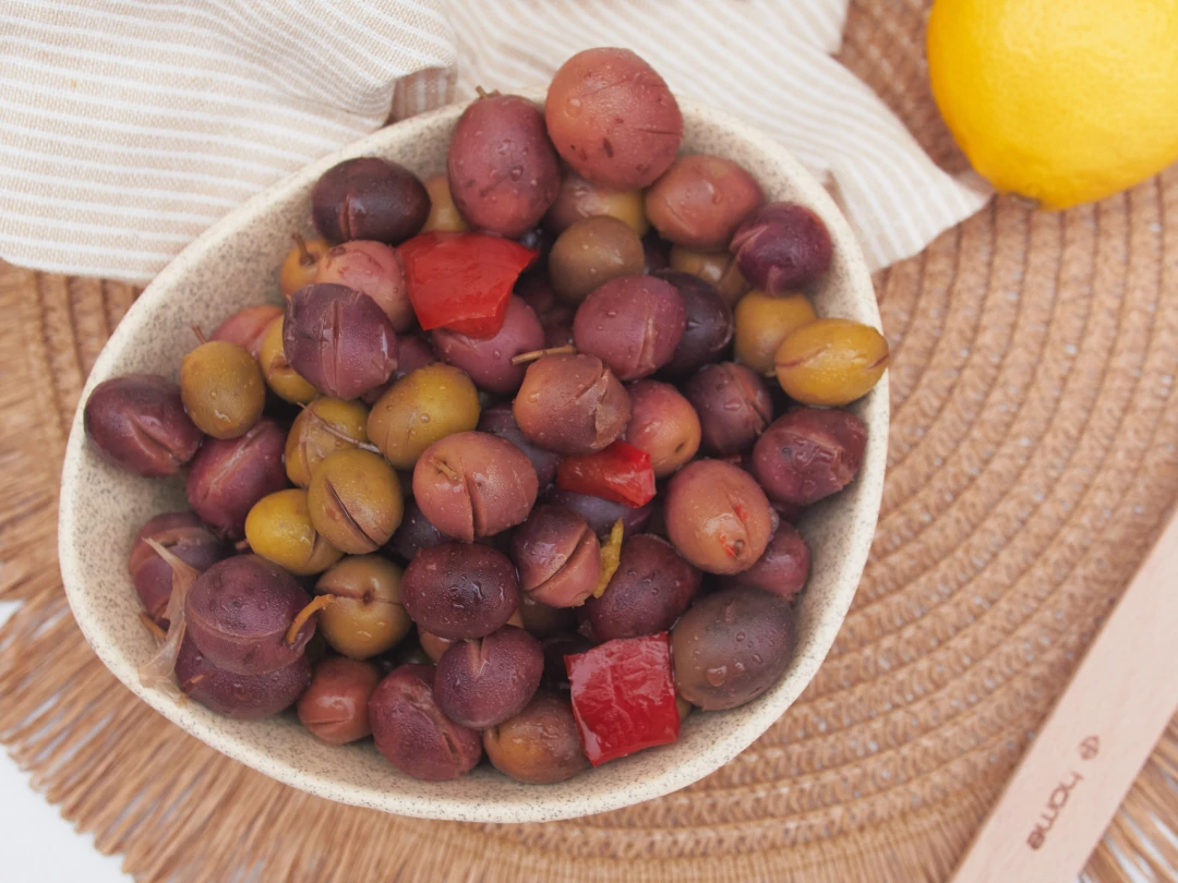 Originaria de olivares tradicionales, esta aceituna de tono morado oscuro se caracteriza por su sabor intenso y textura carnosa. Aliñada con trozos de ajo fresco, cada bocado ofrece una combinación armoniosa del sabor robusto de la aceituna con el aroma y picante suave del ajo.